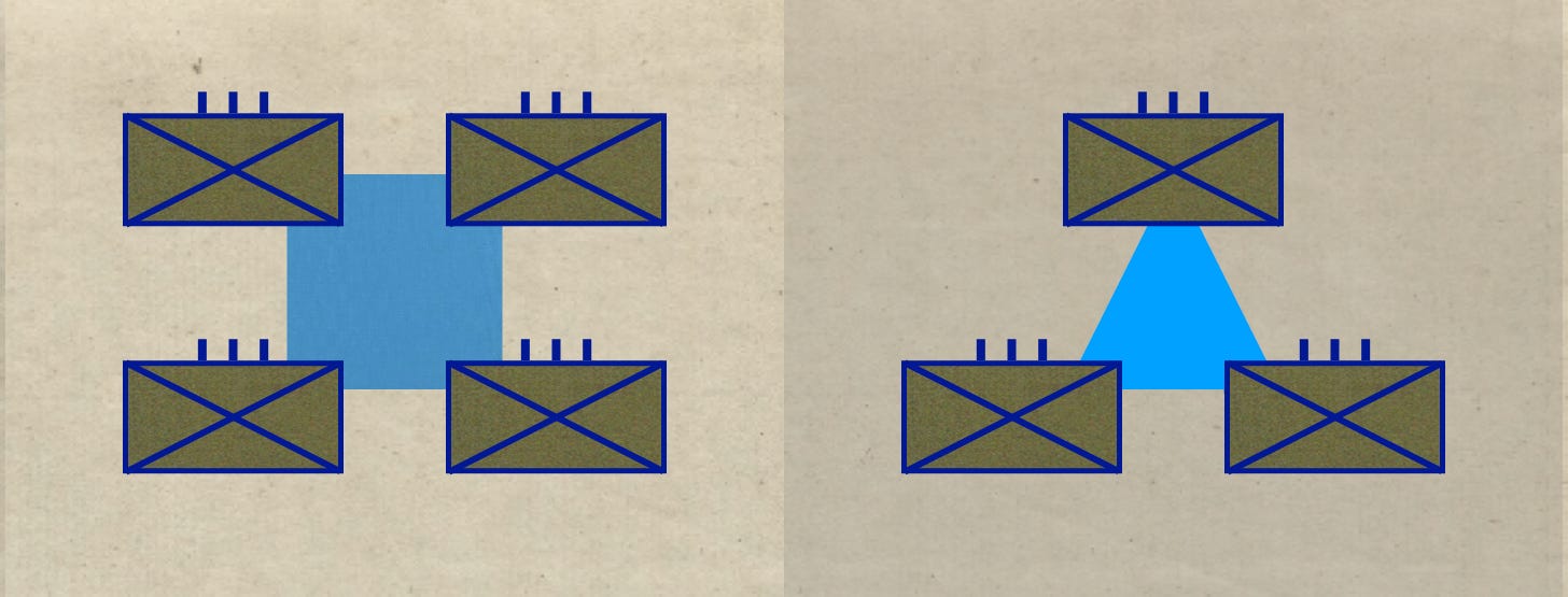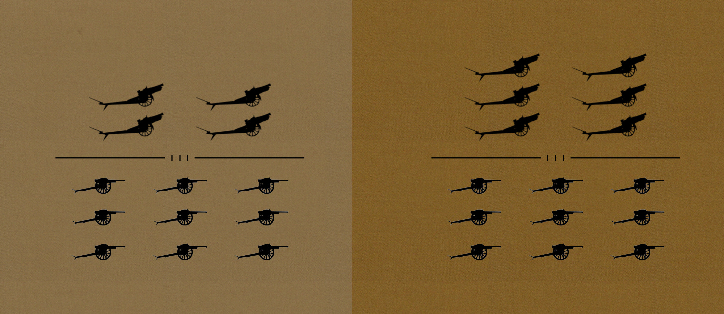The reduction of the number of infantry regiments in each division eliminated the need for one of the light artillery battalions. Thus, rather than possessing two light regiments, each of two battalions, the triangular division would receive, in the form of a three-battalion regiment, a single home for all of its light battalions.