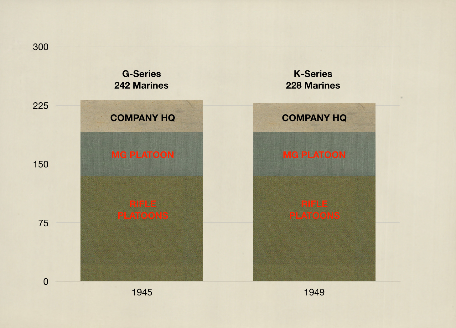 In May of 1949, the Marine Corps adopted the K-Series tables of organization. When, six months later, these establishments went into effect, the divisions of the Fleet Marine Force gained (or, to be more precise, regained) a collection of patterns for regiments, battalions, and companies that bore a close resemblance to the set of structures in use in the last year of the Second World War.