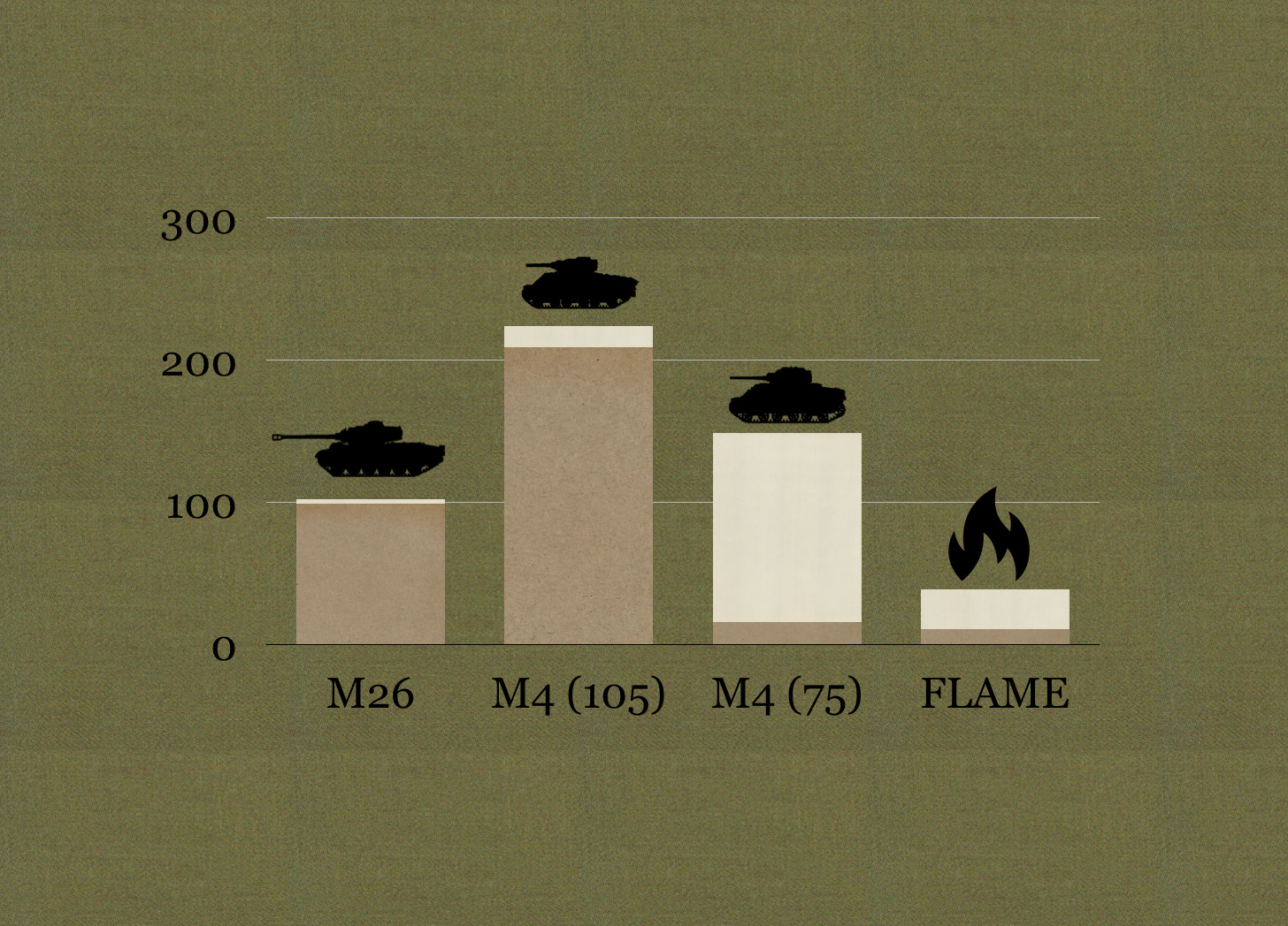 Nearly all of the Pershings (99 of 102) and most (209 of 224) of Sherman assault guns qualified as ‘serviceable’. At the same time, only 16 of the 149 of the Shermans that carried 75mm guns convinced inspectors that they were fit for service. Likewise, a little more than a quarter of the flamethrower tanks (11 of 39) were fully able to perform the definitive duties of a pukka Flammpanzer.