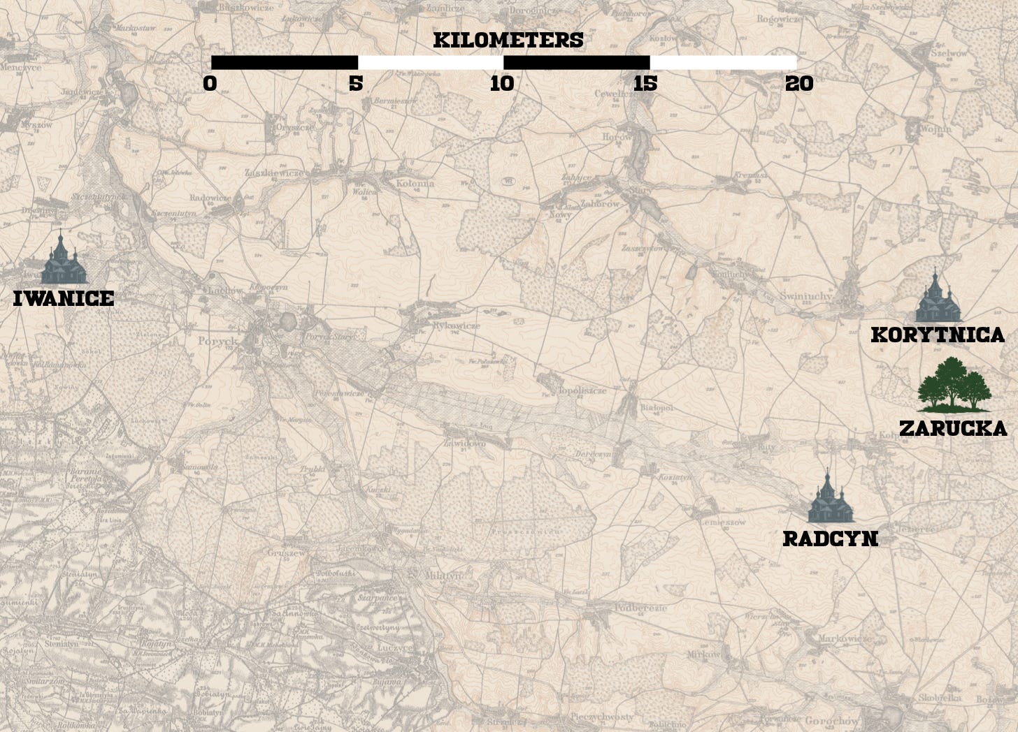 The map comes from a 100,000 map published by the Prussian Geographic Service in 1915 (P39 Gorochów), which I found on Polona, the digital repository of Biblioteka Naradowa, the People’s Library of Poland.